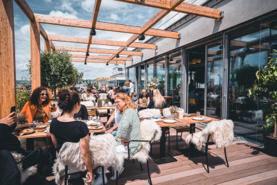 Ein lauer Abend wie aus dem Bilderbuch: Eine Runde mit dem weltbekannten Riesenrad drehen und danach herrliche spätsommerliche Sundowner-Feelings auf der Rooftop-Bar „Neni am Prater“ genießen.