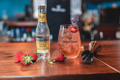 - mit Fever-Tree Raspberry & Rhubarb Tonic Water auffüllen