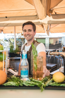 Der Oberst an der Bar, Dominik Oswald, mixt uns einen erfrischenden, sommerlichen